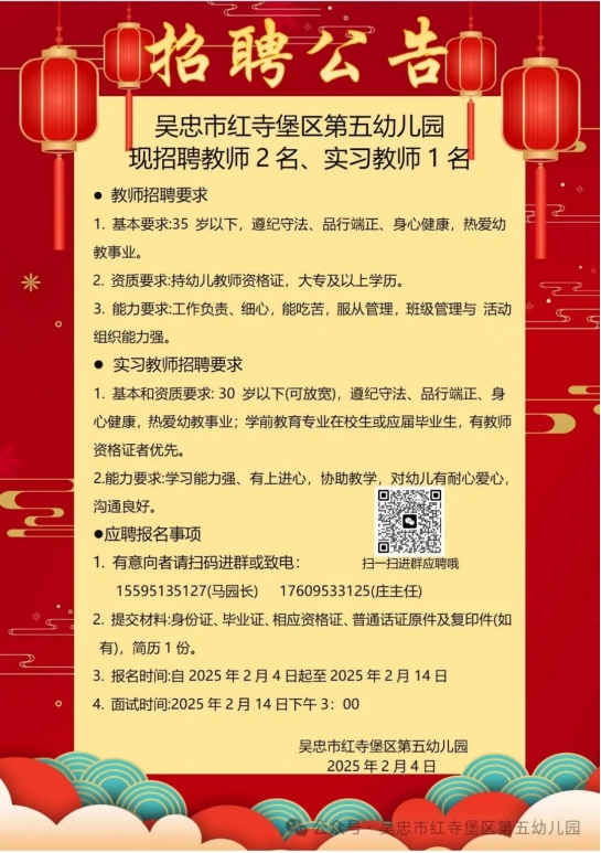 2025年宁夏吴忠市红寺堡区第五幼儿园招聘公告