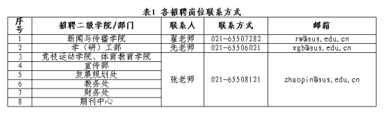 各招聘岗位联系方式详见表1。