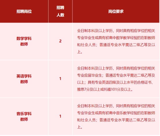 全日制本科及以上学历,同时具有相应学位;经验教师可适当放宽标准;