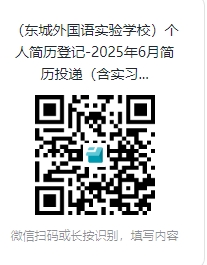 【WPS表单】邀你填写「(东城外国语实验学校)个人简历登记-2025年6月简历投递(含实习生招募)」