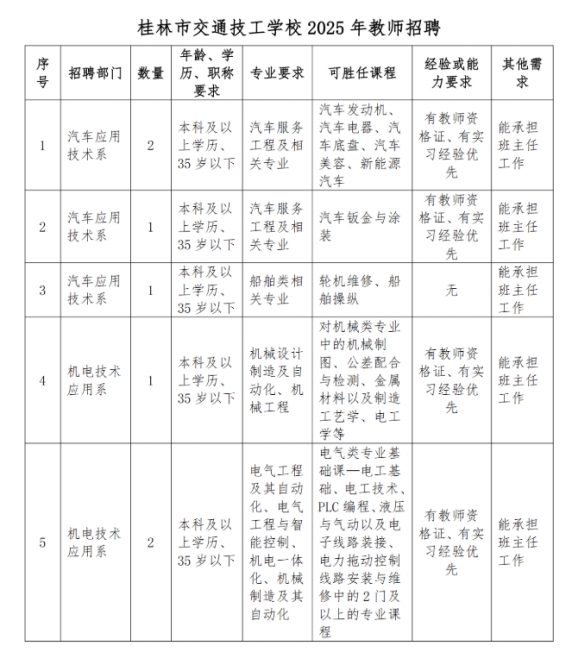 桂林市交通技工学校2025年教师招聘公告