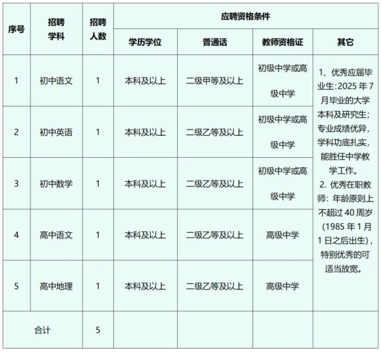 本次招聘员额教师共计5名,招聘岗位如下。