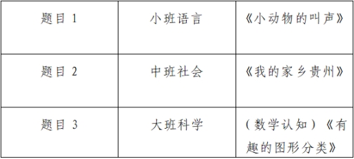 说明:无生试讲,面试当天从以上三个试教题目抽取其一,幼儿园不提供教具及设备。