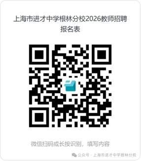 2025年10月底前,应聘人员请在“上海市进才中学”或“上海市进才中学根林分校”微信公众号,通过扫码如实填写《上海市进才中学2026教师招聘报名表》并提交。