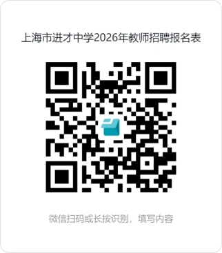 2025年10月底前,应聘人员请在“上海市进才中学”微信公众号,通过扫码如实填写《上海市进才中学2026教师招聘报名表》并提交。