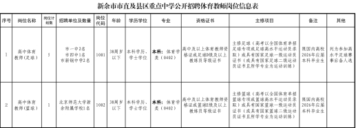 附件1:新余市市直及县区重点中学公开招聘体育教师岗位信息表.xls
