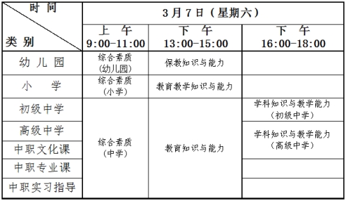 2026年上半年中小学教师资格考试(笔试)日程安排表
