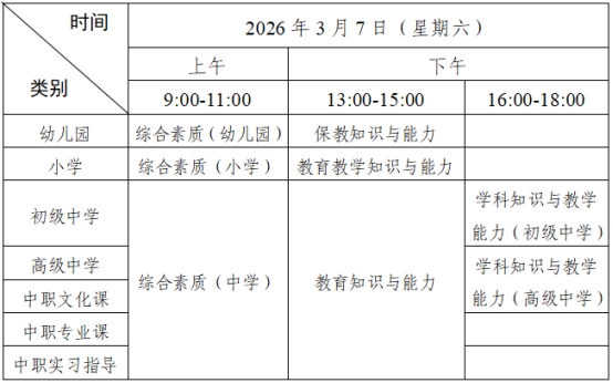 4.2026年上半年中小学教师资格考试(笔试)科目代码列表