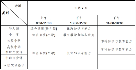 表1 中小学教师资格考试各科目考试时间