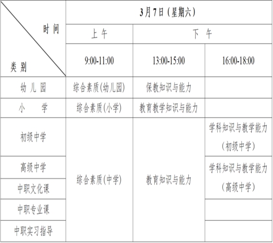 (四)申请中职专业课及中职实习指导教师资格的人员参加高级中学教师的“综合素质”和“教育知识与能力”两科笔试,“学科知识与教学能力”科目纳入面试环节考查。