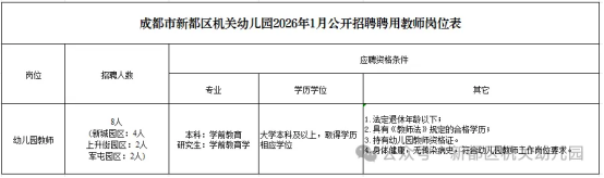 附件1:2026年新都区机关幼儿园面向社会公开招聘聘用教师岗位表