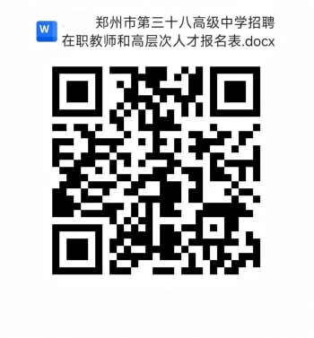 2.邮箱:请将电子版个人简历和《在职教师和高层次人才报名表》(扫描二维码下载)等材料,请将材料打包在一个文件夹,压缩后发送至邮箱zzsd38g@163.com,邮件主题请注明“应聘学科+姓名”(例:“语文+张三”)。