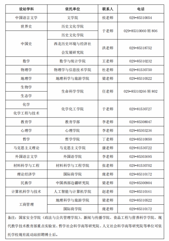 学校设有20个博士后科研流动站,基本覆盖学校现有博士点的所有二级单位。学校高度重视博士后工作,积极落实国家和陕西省的相关政策,不断加大投入,吸引了一大批来自国内外高水平大学的优秀博士毕业生从事博士后合作研究。截至2025年底,学校已累计招聘博士后1100余人,大部分出站的博士后已成长为高校、科研院所及企业的业务骨干,博士后培养质量取得不断进步。