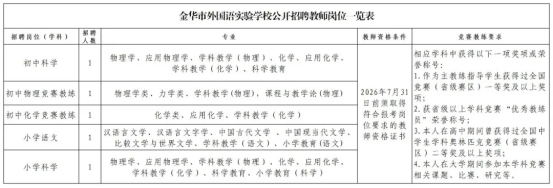 金华市外国语实验学校2026年诚聘优秀教师公告