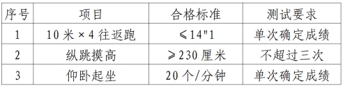 未按规定时间、地点参加体能测试的,视为自动放弃报考资格。体能测试单项不合格或未按要求参加体能测试的人员,不能进入笔试。未通过体能测试人员,笔试费用全额退回。