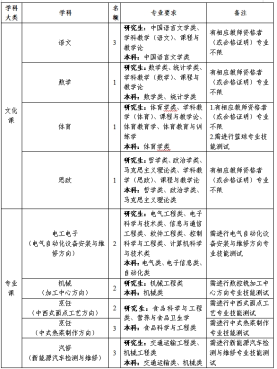 二、招聘学科、名额及专业要求