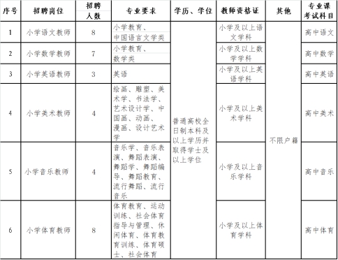 2020年双台子区公开招聘中小学教师岗位信息表(小学34人)