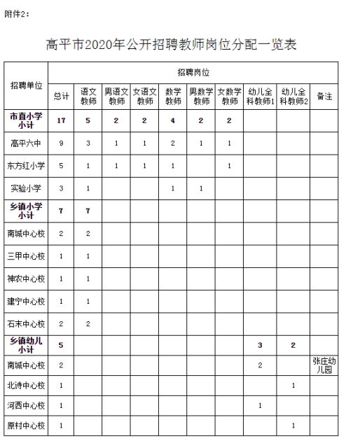 附件:1.高平市2020年公开招聘事业单位工作人员岗位及条件一览表