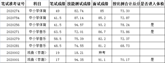 2020年湖滨新区备案制教师招聘笔试、专业技能测试、面试总成绩公布及进入体检名单(二)