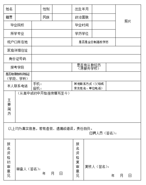 2020年三穗县招聘社会化服务教师报名表