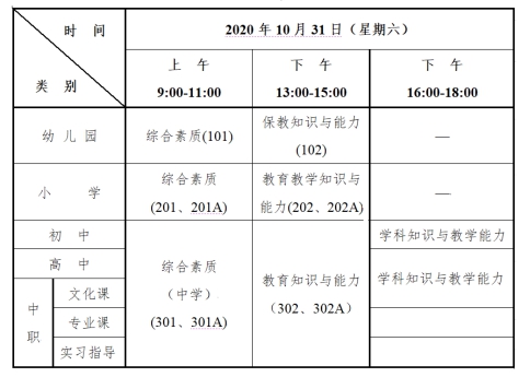 本次笔试考试日期为2020年10月31日,各科目考试时间均为120分钟、采用纸笔考试方式。