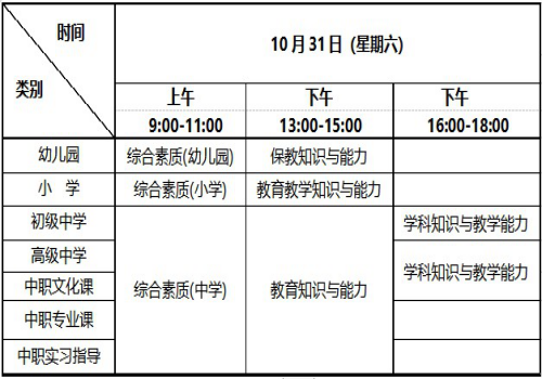 四、2020年下半年中小学教师资格考试笔试时间安排