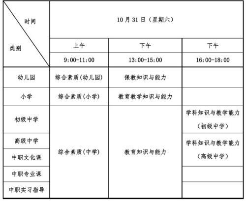 (二)考试时间:2020年10月31日。所有科目考试均采用纸笔方式进行,具体安排如下: