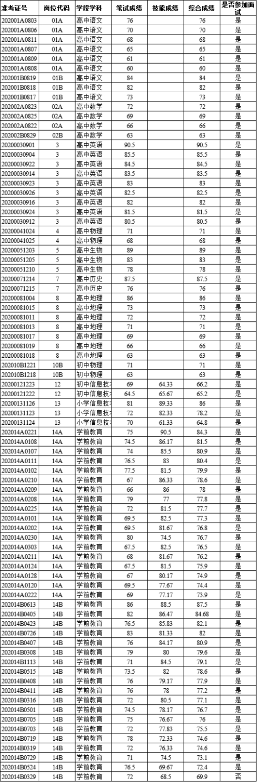 根据《2020年秋季如东县教育系统公开招聘教师公告》,现将报考人员的笔试成绩、技能测试成绩以及进入面试的人员予以公示(名单附后)。