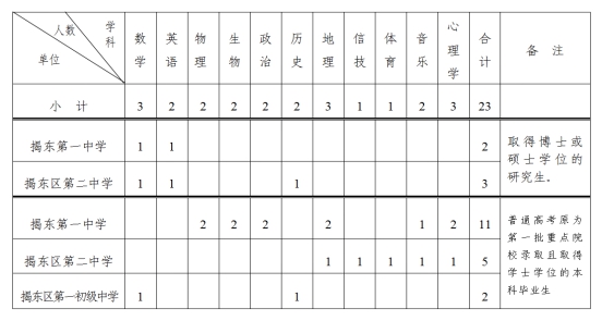 为满足我区重点中学教学工作需要,建设一支学科配套的高素质教师队伍,经揭阳市揭东区人民政府同意,揭阳市揭东区人力资源和社会保障局、揭阳市揭东区教育局决定于2020年12月28日—30日到华南师范大学设点开展校园招聘。根据《广东省事业单位公开招聘人员办法》(广东省人民政府令第139号)的有关规定,现将招聘有关事项公告如下: