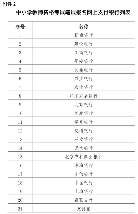 2.中小学教师资格考试笔试报名网上支付银行列表