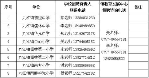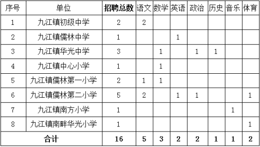 备注:以上招聘对象不含九江镇各学校在职镇聘教师。