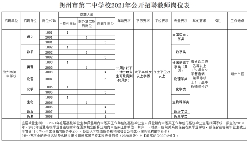 5.朔州市第二中学校2021年公开招聘教师岗位表