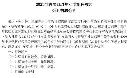 附件:2021年度望江县中小学新任教师招聘计划岗位信息.xls