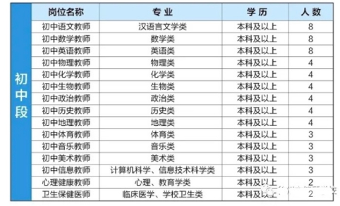 专业对口,具有与任课学科(工作岗位)一致或相近的大学本科及以上学历,有相应的教师资格证(非师范类提供参加教师资格考试的教育学、心理学证明,研究生以上学历可以入职后再参加考试),语文教师普通话等级为二级甲等及以上,其他学科教师普通话等级为二级乙等及以上。