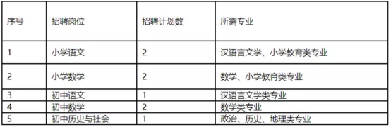 本次招聘专任教师共计8名,承担小学、初中教育教学,具体学科情况如下: