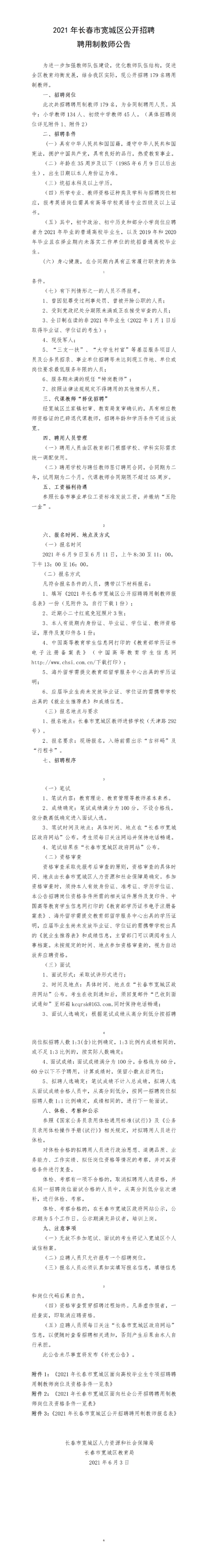 附件1:2021年长春市宽城区面向高校毕业生专项招聘聘用制教师岗位及资格条件一览表.xls