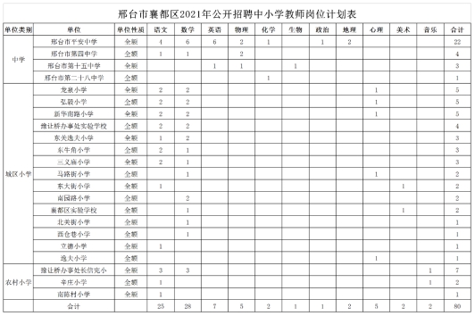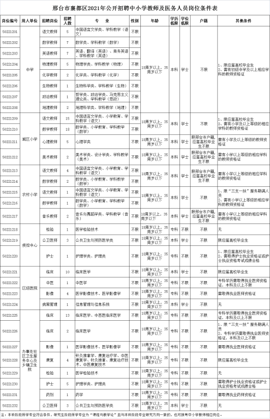 邢台市襄都区2021年公开招聘中小学教师及医务人员简章