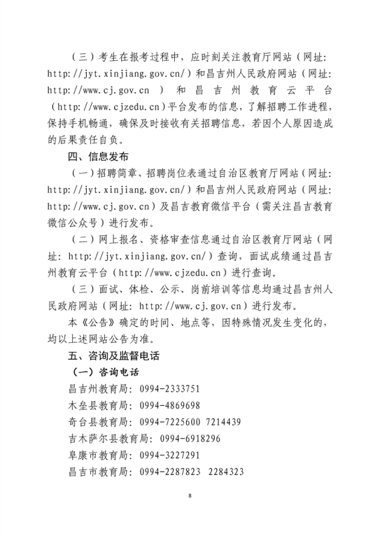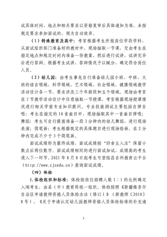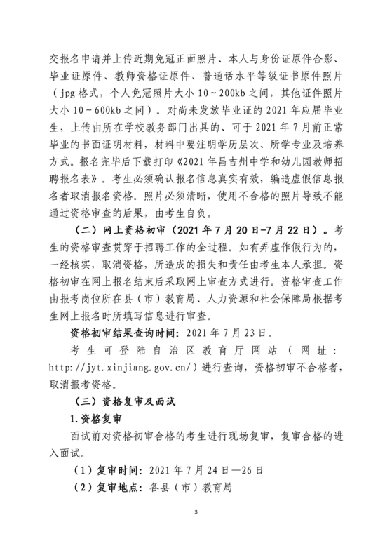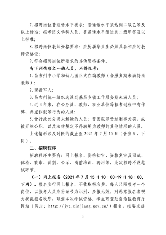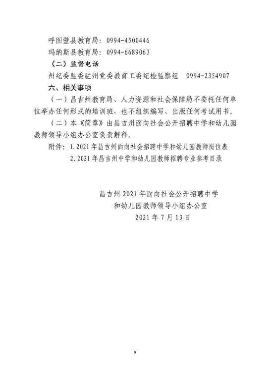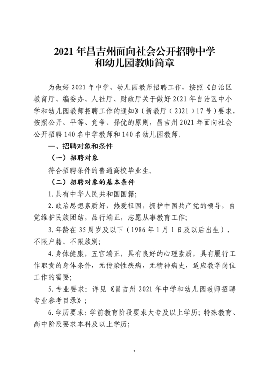 2021年新疆昌吉州中小学和幼儿园教师招聘简章