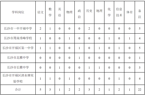 为进一步优化开福区教师队伍,经开福区委教育工作领导小组研究并报区委区政府同意,决定为长沙市一中开福中学、长沙市周南秀峰学校、长沙市长雅中学、长沙市北雅中学、开福区第一中学、清水塘实验学校招聘引进22名2020年应届毕业公费师范生。