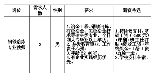 2.冶金专业教师岗位