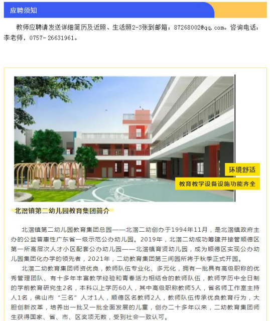 北滘镇第二幼儿园分园区招聘信息来了!(带班教师2人、体育教师2人)