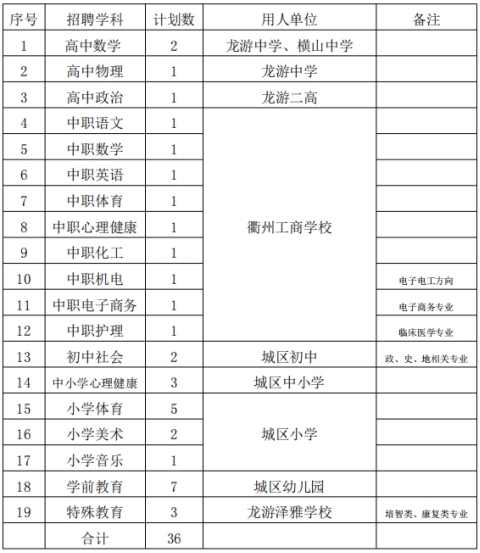 注:具体学科计划和时间安排可根据招聘进程及时调整,届时详见龙游智慧教育网、龙游县人民政府县人力资源和社会保障网及对应师大招聘公告。