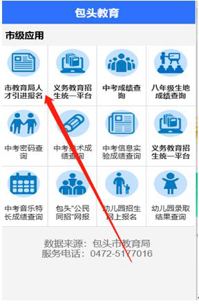 蒙速办”APP操作方法:手机下载注册“蒙速办”APP→左上角选“包头”→左下角“服务”→点击左侧“文体教育”→选“包头教育”→点击上方“市教育局人才引进报名”。