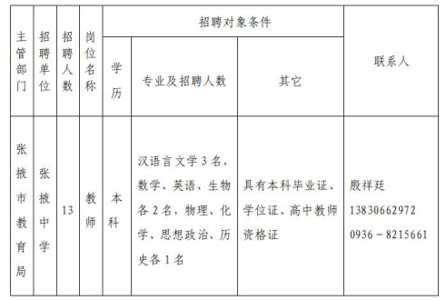 2.招聘对象不限生源或户籍,同等条件下优先招聘张掖市生源毕业生。