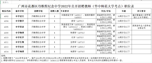 广州市花都区邝维煜纪念中学2022年公开招聘教师公告