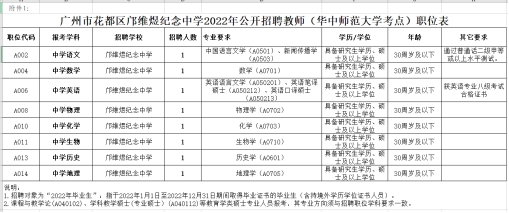 广州市花都区邝维煜纪念中学2022年公开招聘教师公告