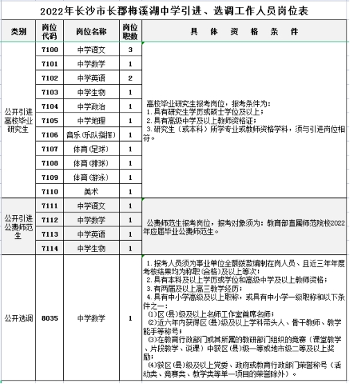 按照事业单位人事制度改革的要求,经中共长沙市委机构编制委员会办公室、长沙市人力资源和社会保障局、长沙市教育局批准,我校决定公开引进高校毕业研究生14名、公费师范生4名,选调骨干教师1名,现将有关事项公布如下:
