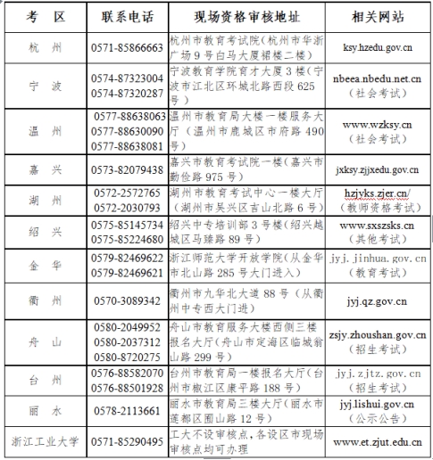 2021年下半年浙江省中小学教师资格考试面试报名现场资格审核确认点信息汇总表
