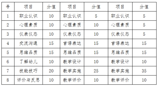 中小学教师资格考试面试满分100分,各项目分值具体如下(中职教师面试分值同中学教师):