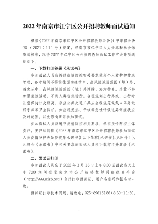 附件1:2022年南京市江宁区公开招聘教师参加面试人员疫情防控告知暨健康承诺书.docx